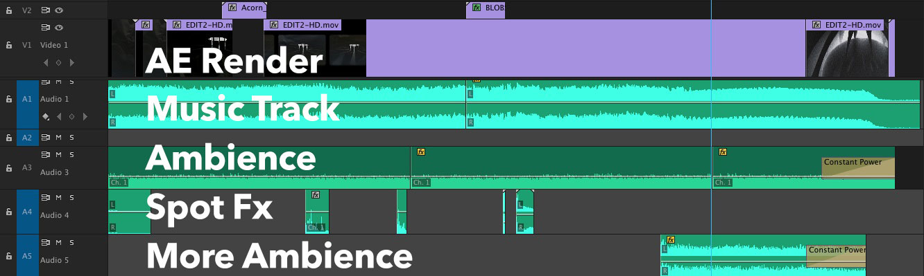 I'll shift it around trying to find the right time to come into the track and then work out the back end, usually by stitching together a natural end to the piece. Then it'll be cutting up pieces of the track to hit certain beats of the animation or cutting my renders up to fit the music. Sometimes I'll have a base sound effect to add some more dimension, such as some sort of atmosphere recording.