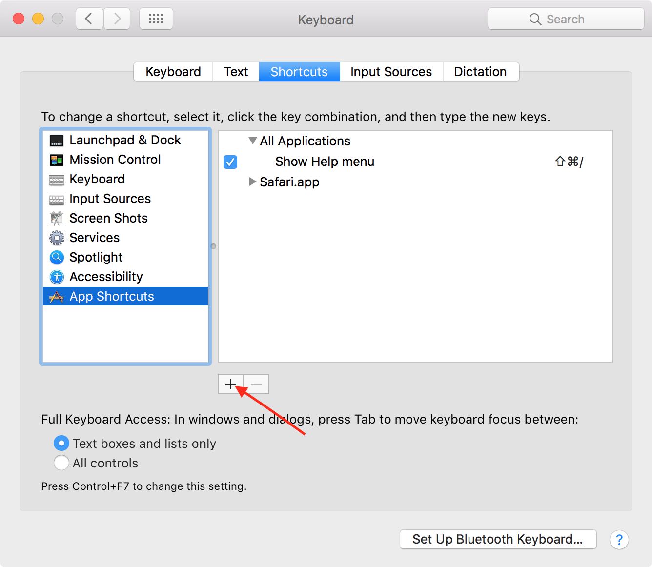 - In the Keyboard pane, go to the "Shortcuts" section and navigate to "App Shortcuts" on the left.